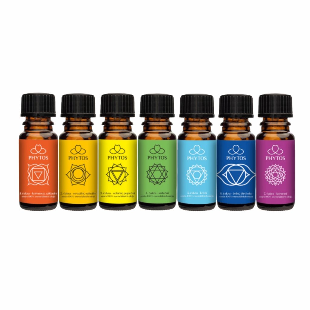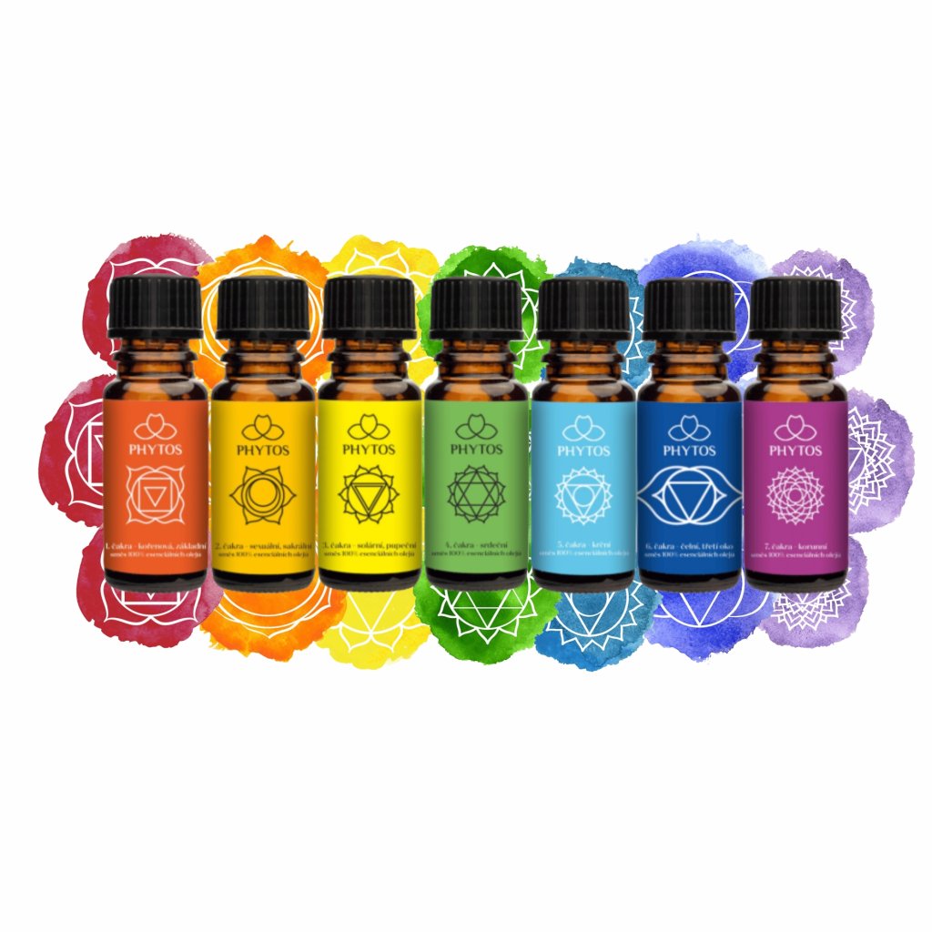 Pečlivě sestavené kombinace olejů pro 7 hlavních čaker: