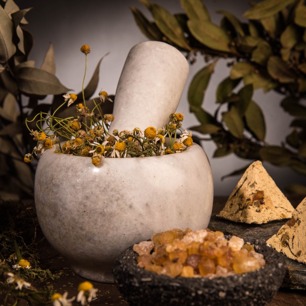 Složení: heřmánek, přírodní pojivo, pryskyřice, kadidlo.