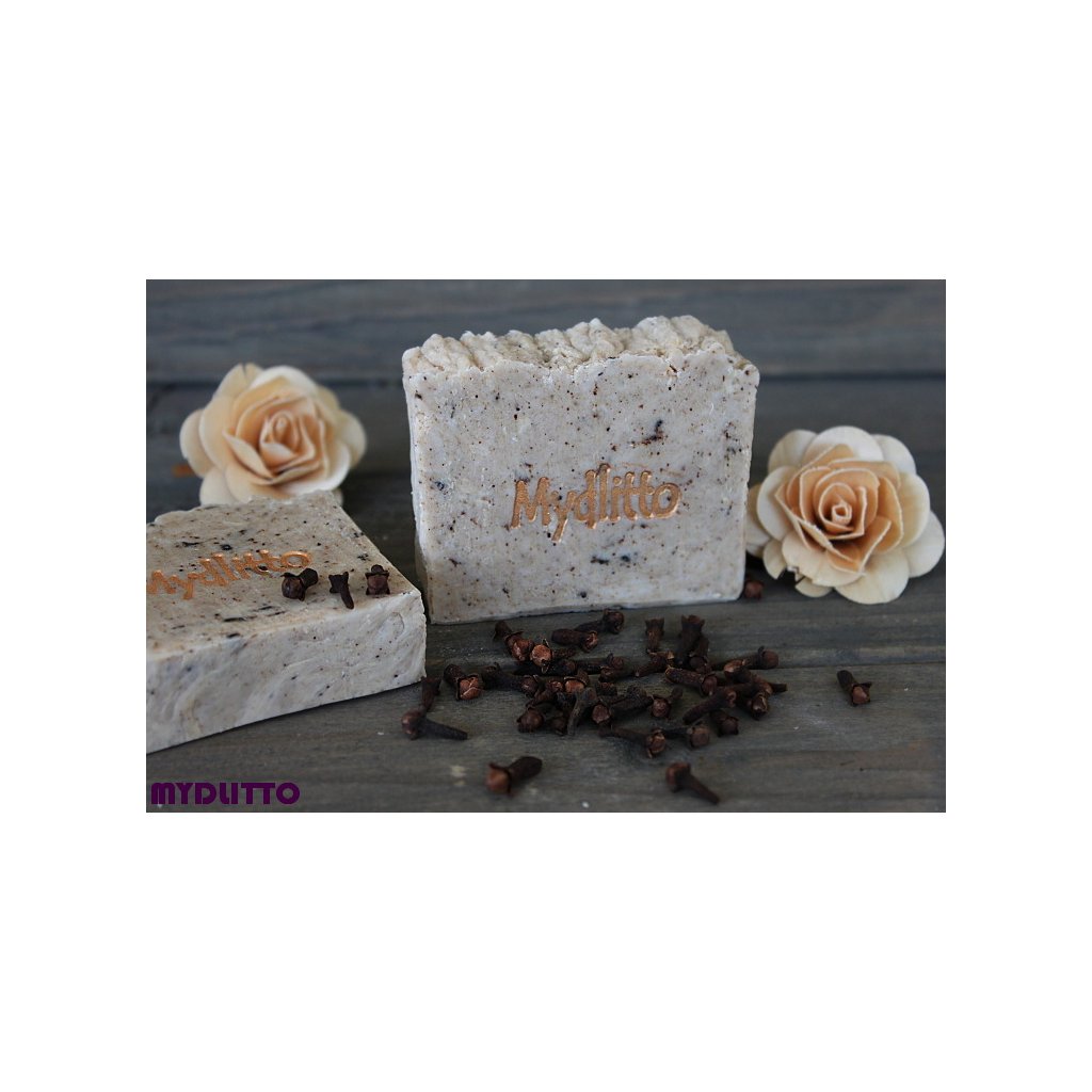 Na rozdíl od běžných mýdel nebyl použit esenciální olej ani macerát, ale pravá hřebíčková pasta — pro maximální účinnost a přirozenou vůni.