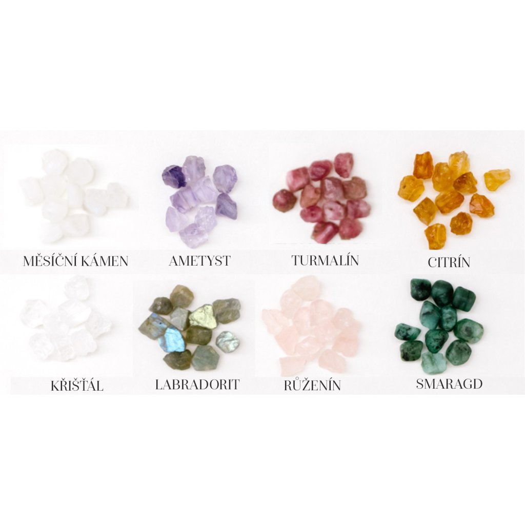 V nabídce máme řetízky s těmito kameny: ametyst, citrín, růženín, labradorit, smaragd, křišťál, měsíční kámen, růžový turmalín