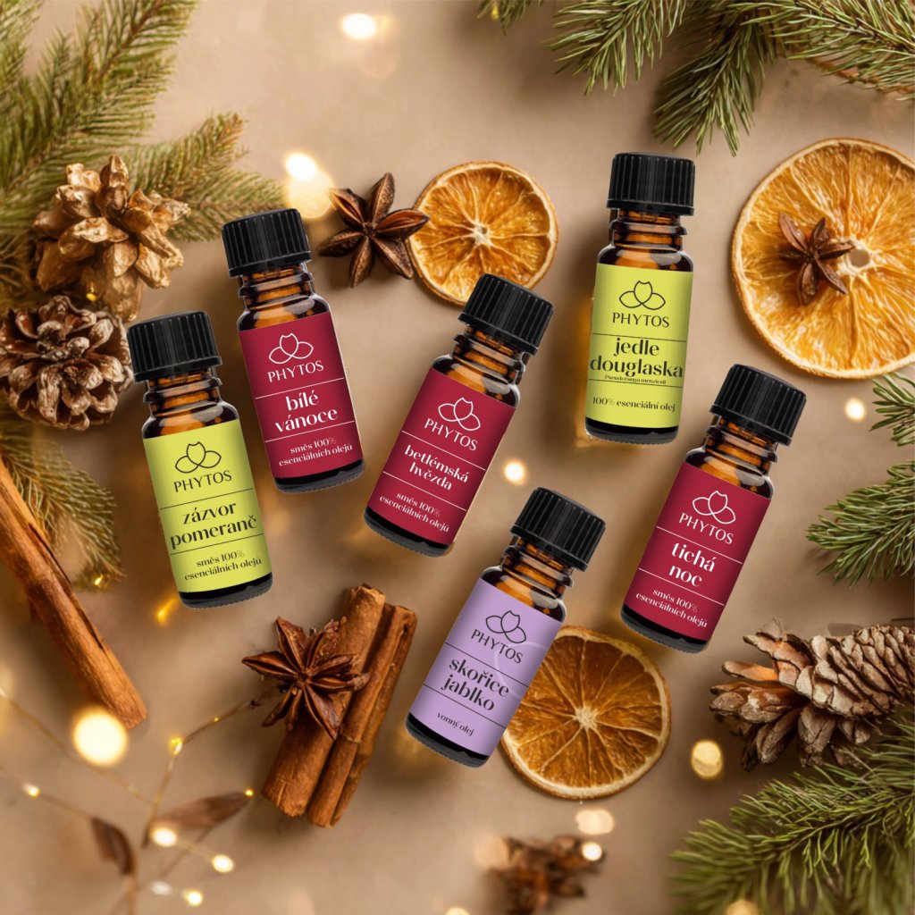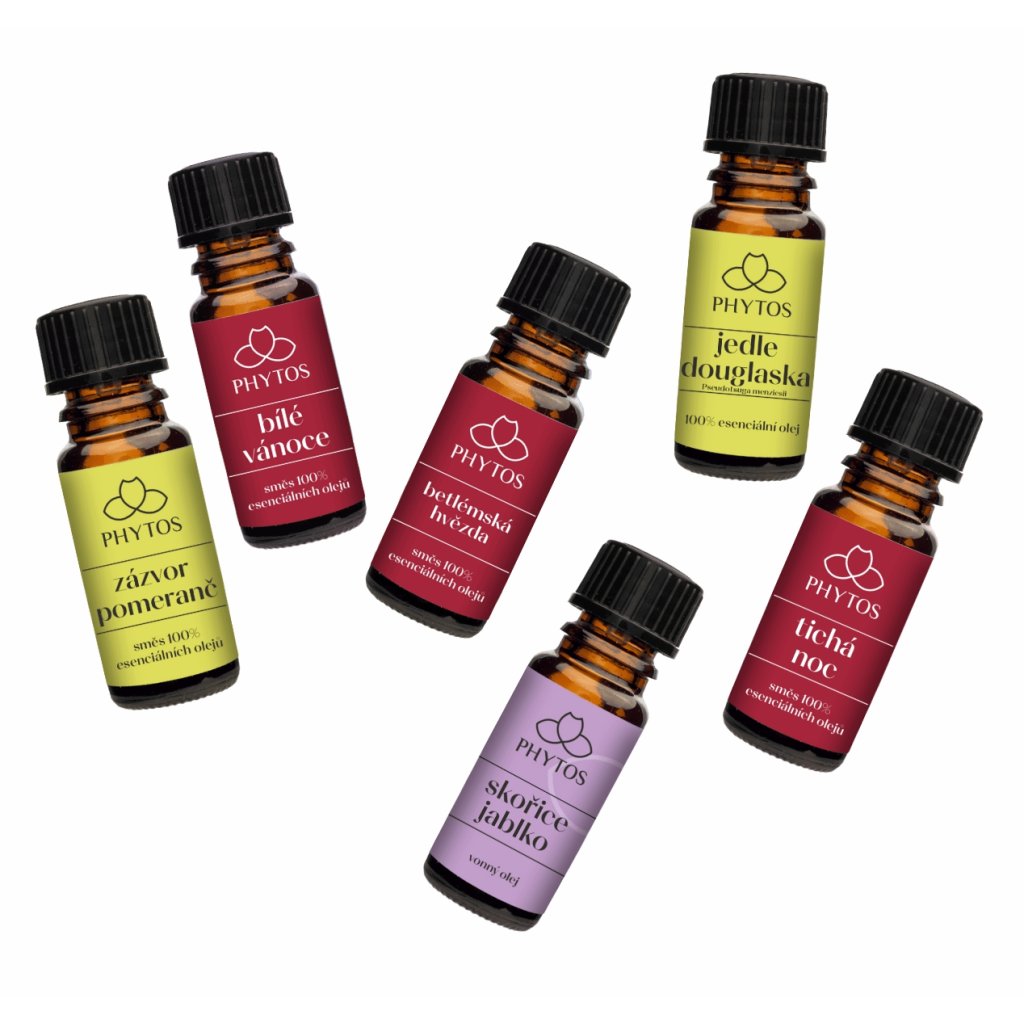 Sada obsahuje 6 lahviček směsí esenciálních olejů po 10 ml: Betlémská hvězda, Bílé Vánoce, Jedle Douglaska, Zázvor–Pomeranč, Tichá noc a Skořice–Jablko (vonný olej).