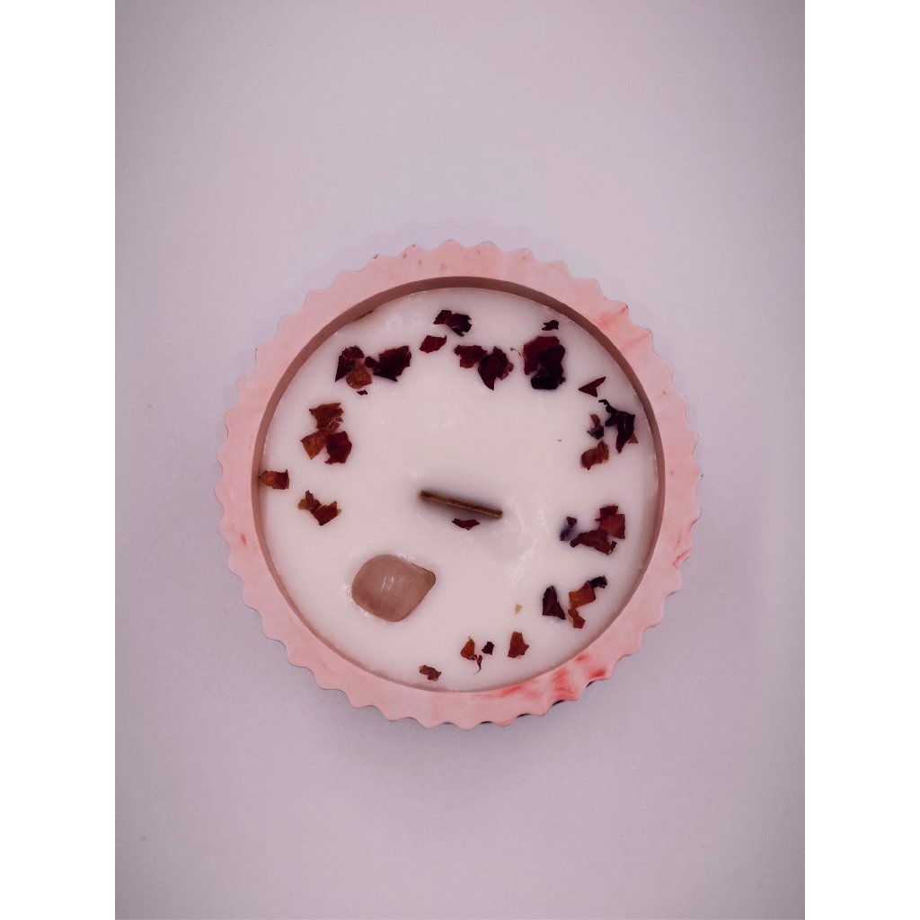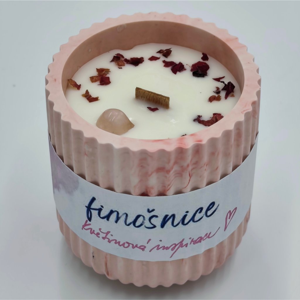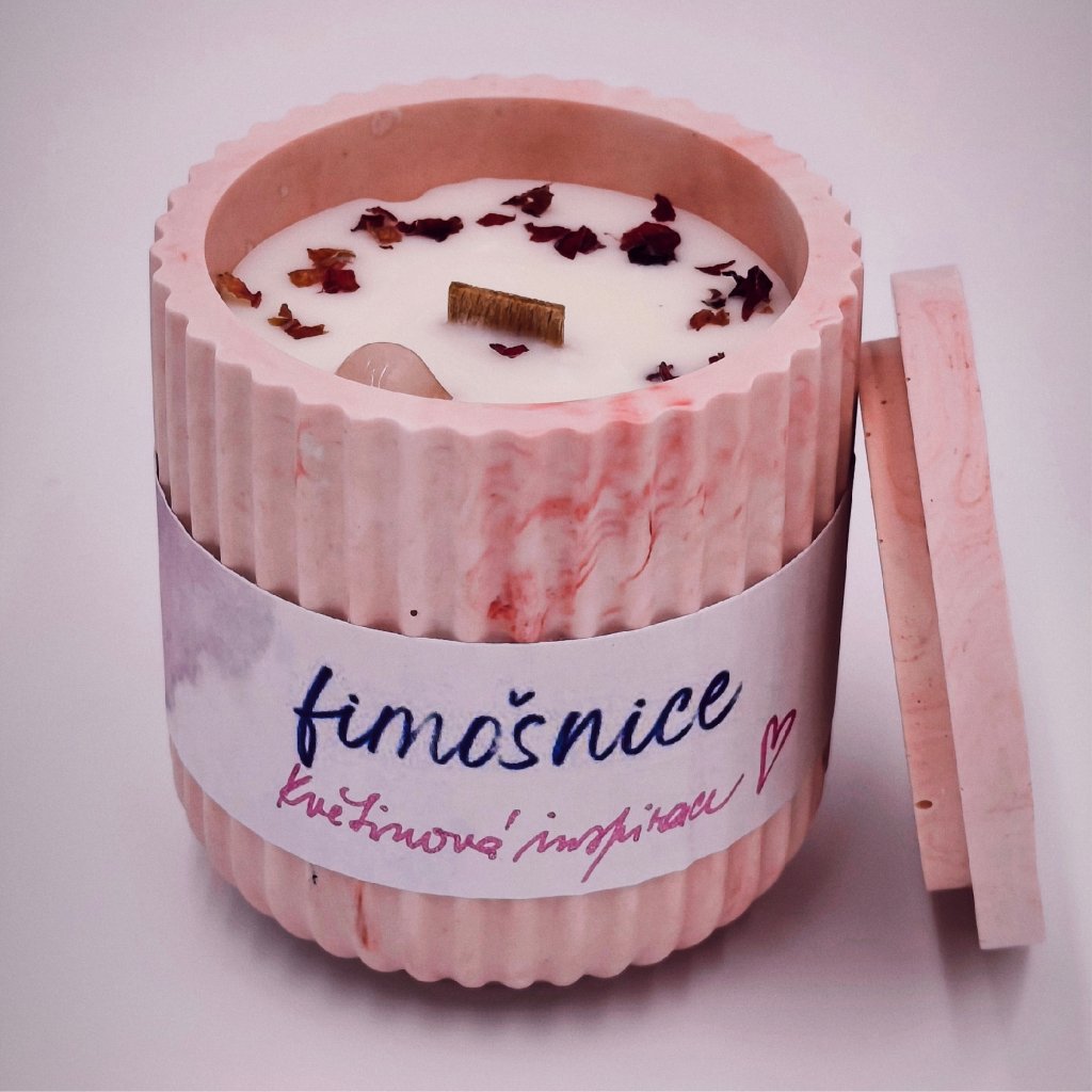 Květinová inspirace – svíčka rozkvětu je ručně vyráběná ze 100% přírodního sójového vosku, odlitá do růžové betonové nádoby s víčkem.