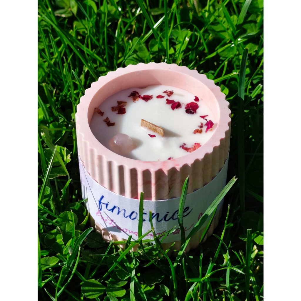 Složení: 100% sójový vosk, esenciální vonné oleje, dřevěný knot, sušené květiny, přírodní kamínek