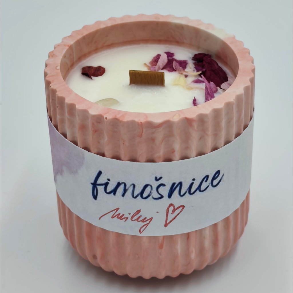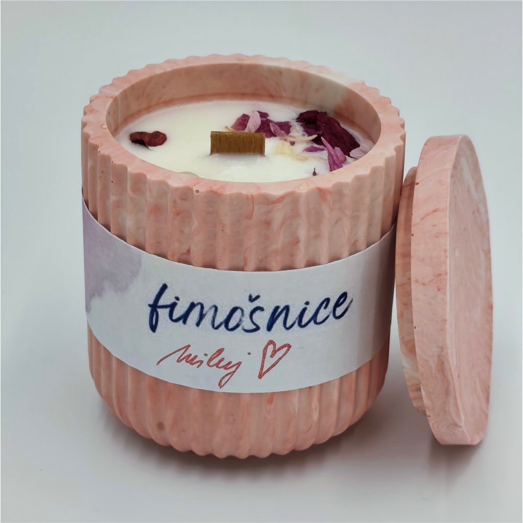 Miluj je ručně vyráběná svíčka ze 100% přírodního sójového vosku, odlitá do růžové betonové nádoby s praktickým víčkem.