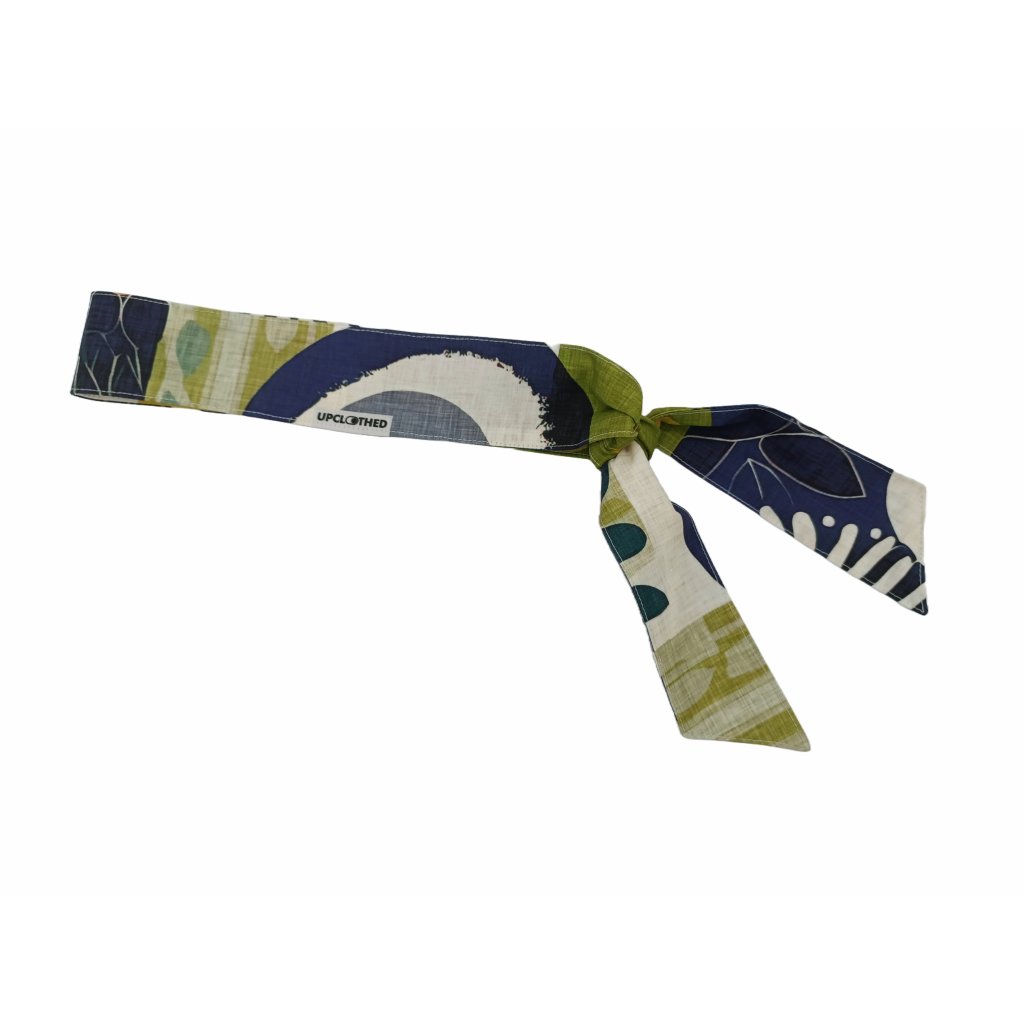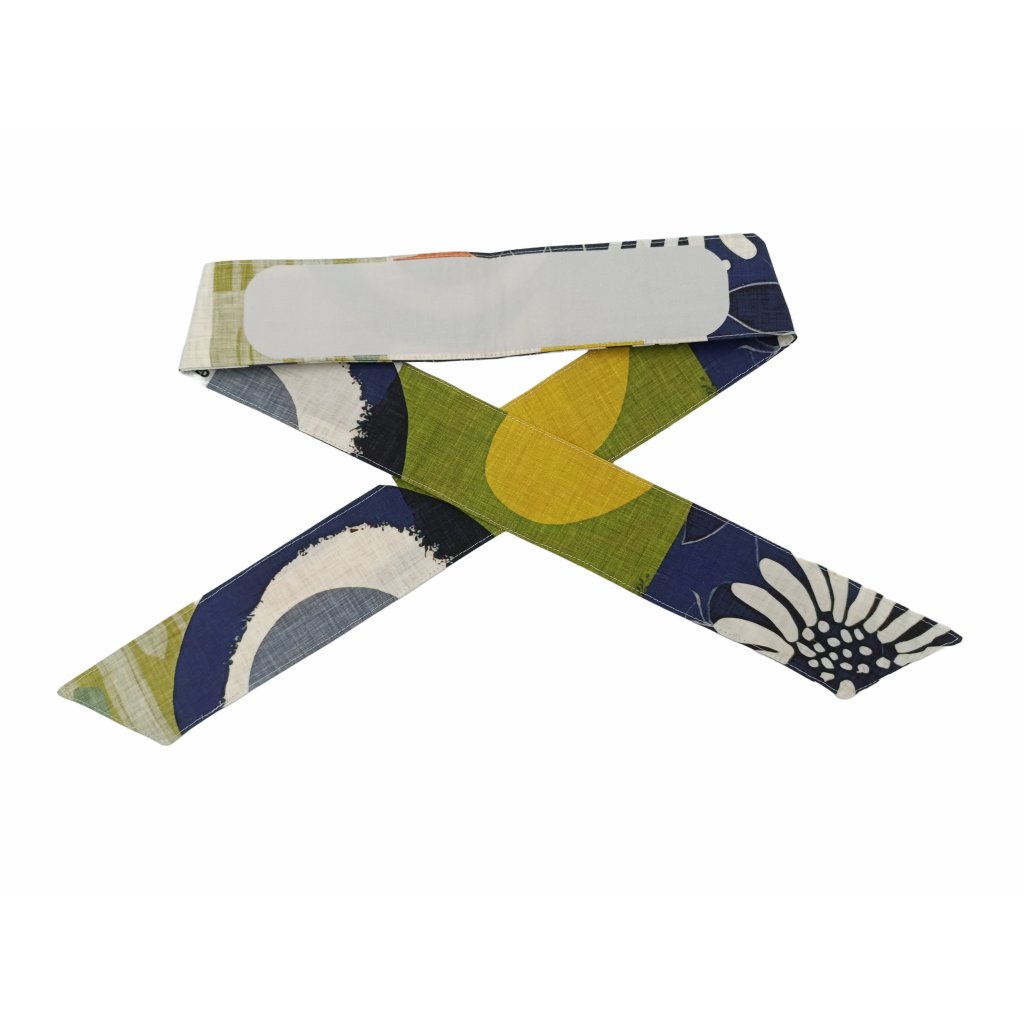 Obsah balení: zavazovací čelenka, textilní fix, cestovní sáček z organické bavlny
