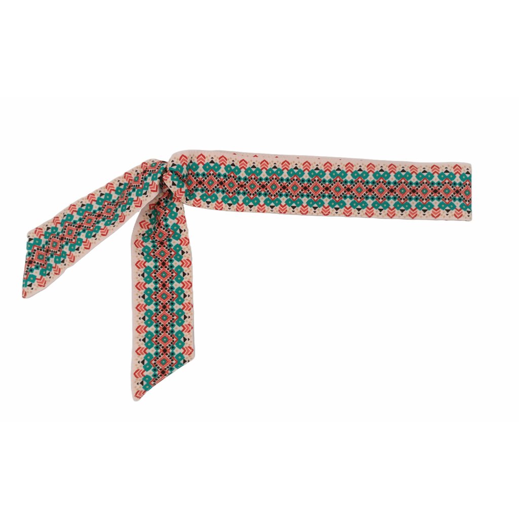 Obsah balení: zavazovací čelenka, textilní fix, cestovní sáček z organické bavlny