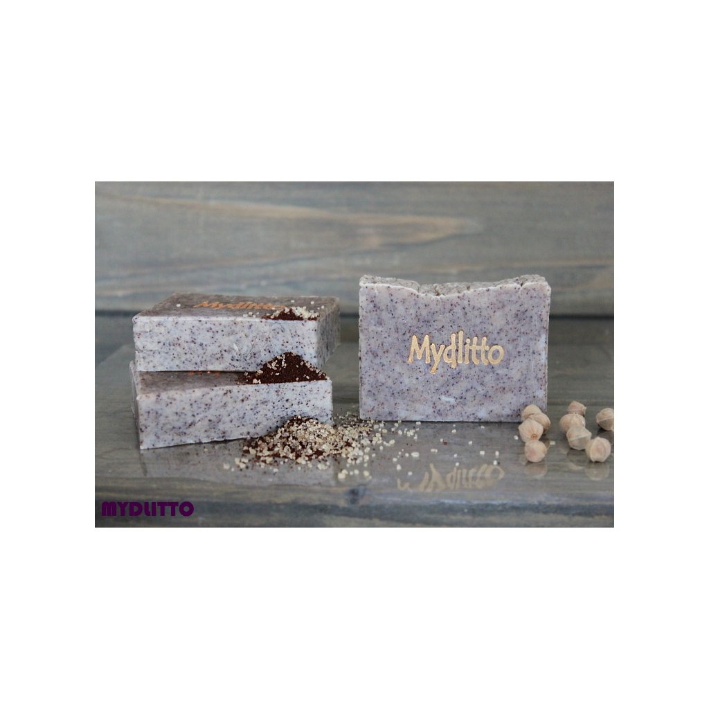 Mýdlová pemza je silně abrazivní přírodní mýdlo s drcenými slupkami ořechů, kávou a meruňkovými peckami, které účinně odstraňuje odumřelé buňky a hrubou kůži. Ideální pro ruce i problematické partie, kde chcete pokožku zjemnit a prokrvit ( například i při celulitidě).