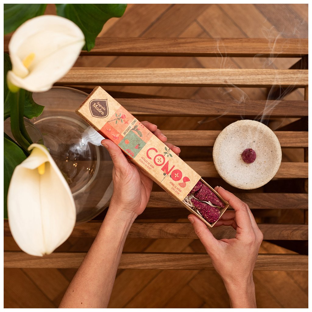 Návod k použití: Zapalte vrchol vonného kuželu, sfoukněte plamen a nechte doutnat. Po dohoření uhaste vodou a popel vložte do půdy.
