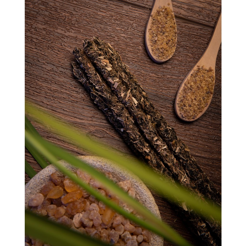 Složení: kadidlová pryskyřice, koncentrovaný olej z citronové trávy, ovocná biomasa, dřevěné uhlí, přírodní pojivo a sůl.