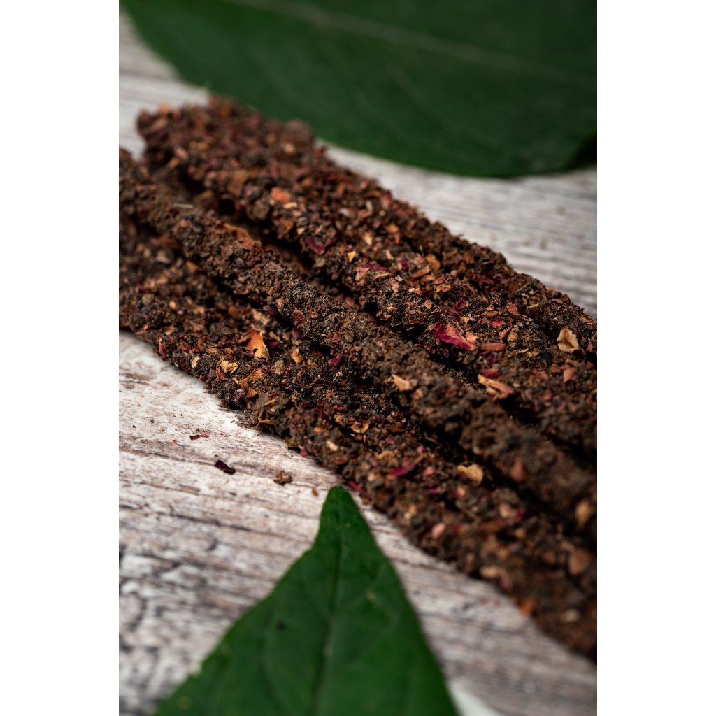 Složení: Okvětní lístky růží, hřebíček, koncentrát růžového a hřebíčkového oleje, ovocná biomasa, dřevěné uhlí, přírodní pojivo a sůl.