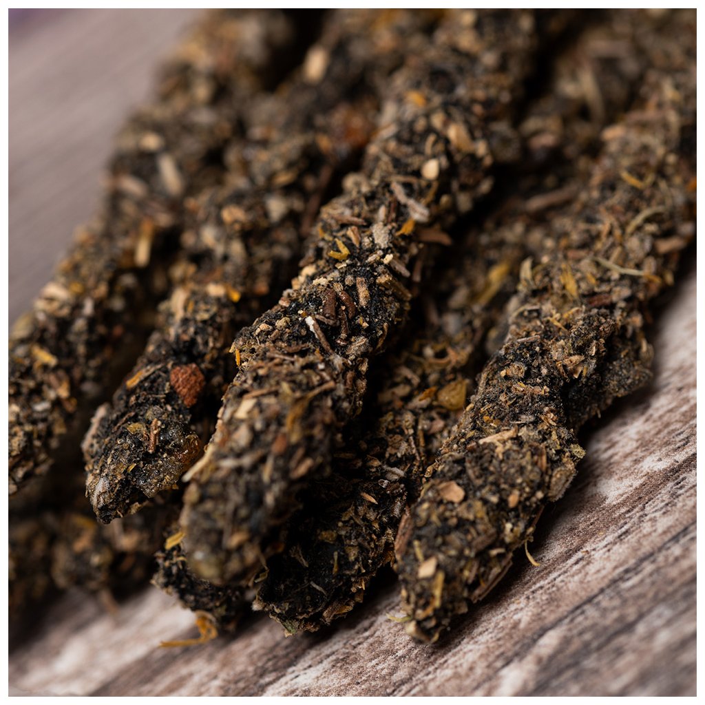 Složení: květ měsíčku, rozmarýn, pomerančová kůra, pryskyřice olibanum (kadidlo), šalvěj, cedr, ovocná biomasa, přírodní pojivo, rostlinné uhlí a sůl.