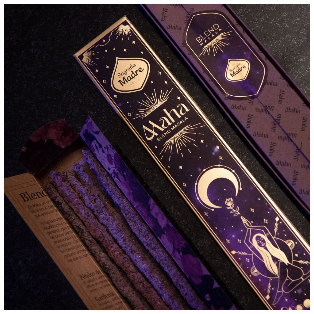 Vůně tyčinek Maha obsahuje energii slunce, měsíce a hvězd. Ve svém masalovém srdci skrývá jemnost třtinového medu a sladkost květin.