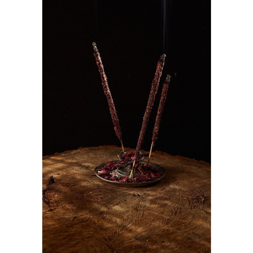 Návod k použití: Zapalte vonnou tyčinku, nechte plamen několik sekund hořet a poté jej jemně sfoukněte. Umístěte tyčinku do stojánku a nechte ji volně doutnat. Po dohoření uhaste zbylý konec vodou.