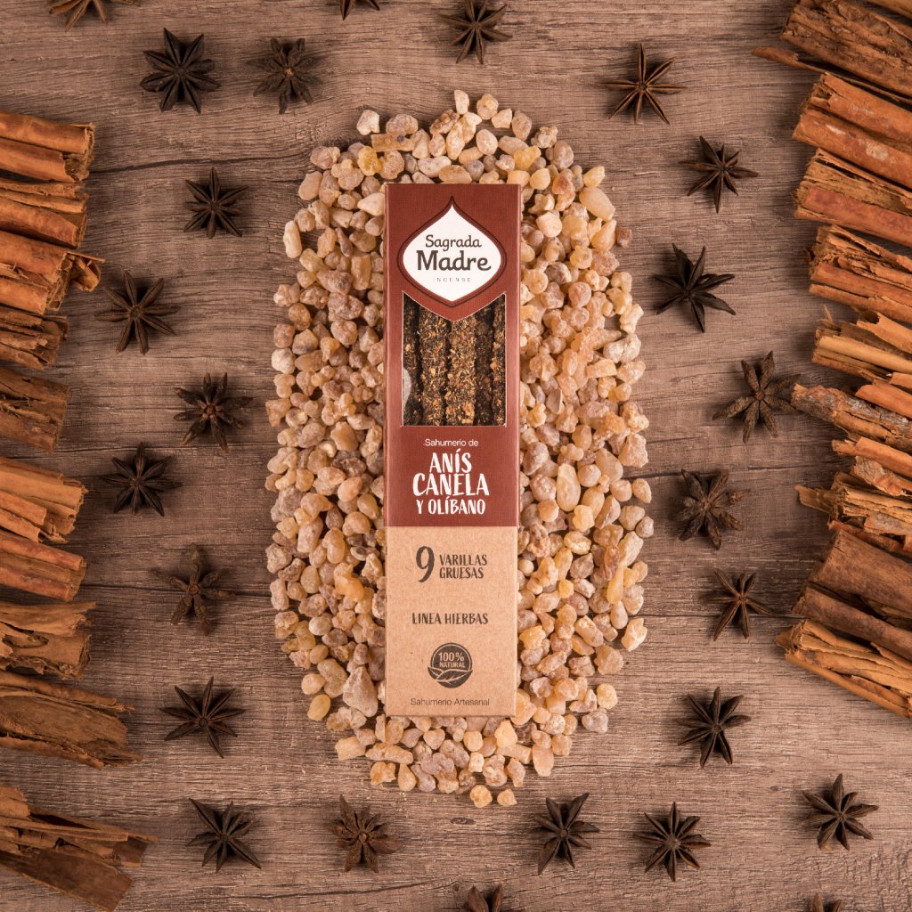 Složení: skořicová kůra a anýz, koncentrovaný esenciální olej z anýzu a skořice, pryskyřice olibanum (kadidlo), ovocná biomasa, rostlinné uhlí a rostlinné pojivo.