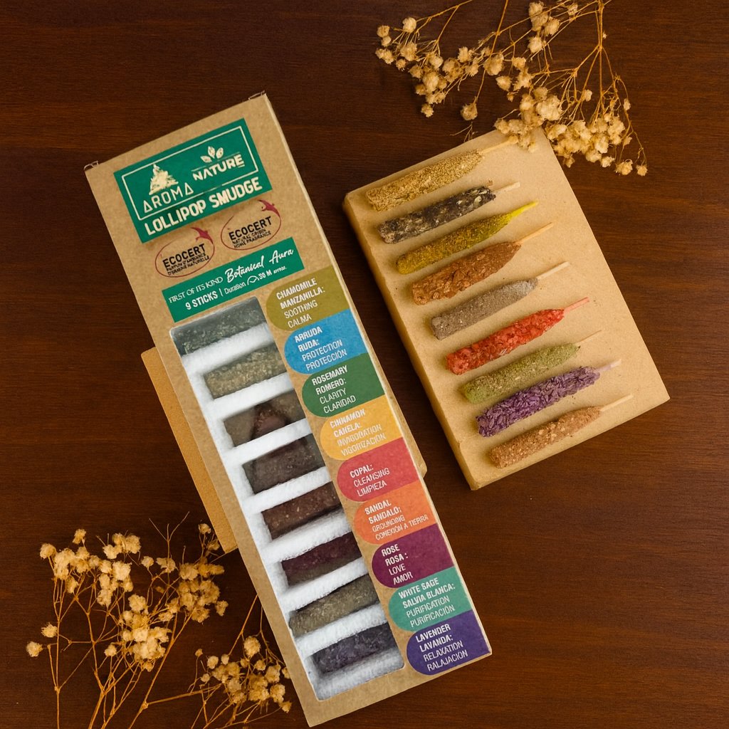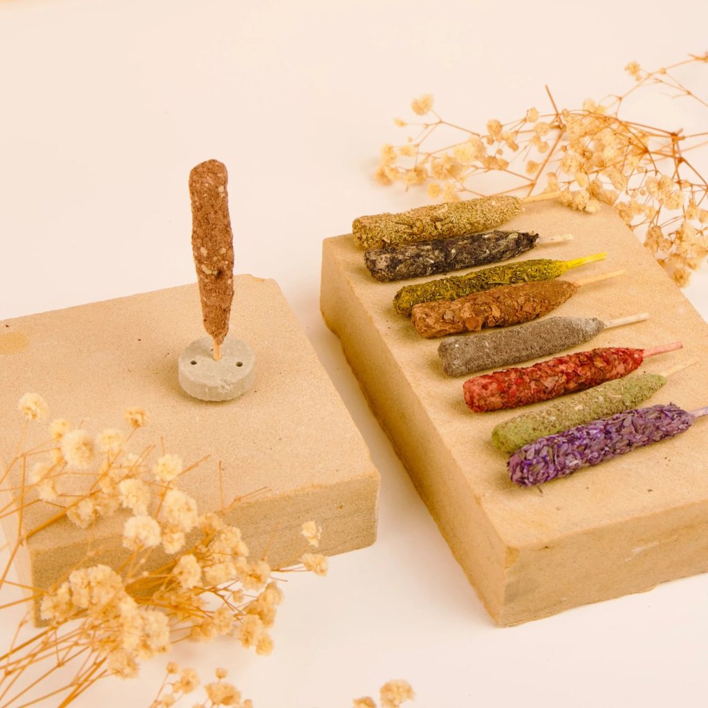 Vonné tyčinky Lollipop jsou jedinečnou směsí bylin, prémiových aromatických olejů, dřevitého prášku a pojiva. Každá tyčinka je ručně vyrobená s cílem proměnit váš prostor v oázu harmonie.